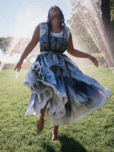Kendi markası Wiederhoeft’ü üç yıl önce kuran Thom Browne çıkışlı Jackson Wiederhoeft, bu tarihi parçaları çağdaş ürünlere dönüştürmeyi başarıyor; tasarımları arasında beli sıkan, kendinden korseli askılı bir kulüp elbisesi yer alıyor.